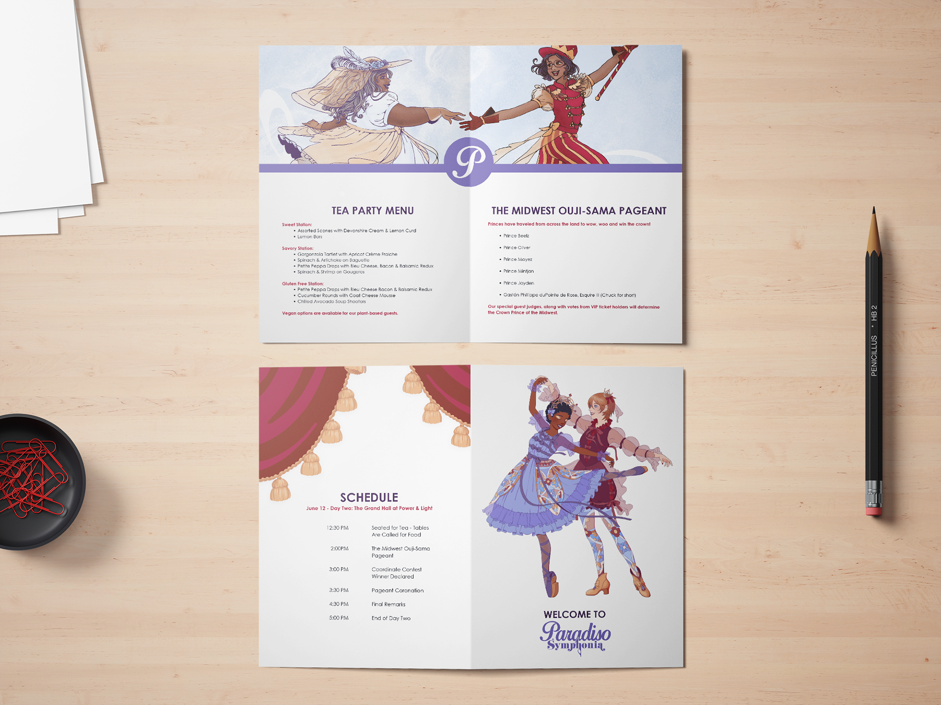 I worked with an illustrator to create a brochure for a tea party.
